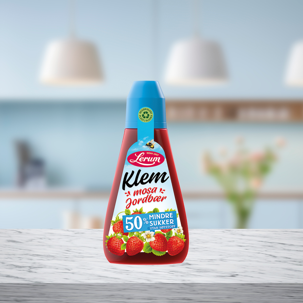 Lerum lanserer nå en variant av sitt populære flaskesyltetøy “Klem” med hele 50 prosent sukkereduksjon.