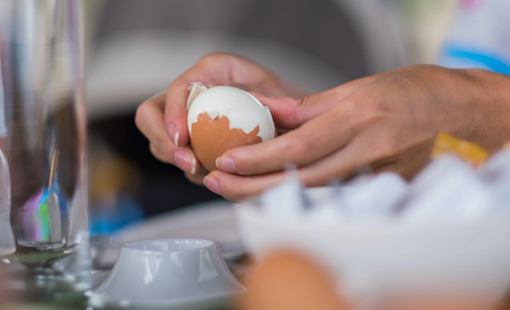 Da stopper du kokeprosessen og får egget akkurat slik du ønsker. Husk også å skrelle hardkokte egg så fort som mulig etter koking, da er det er lettest å få av skallet.