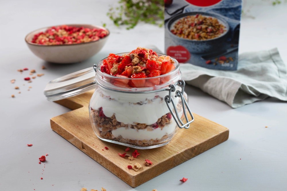 - 4 ss AXA Granola med jordbær og solsikkekjerner