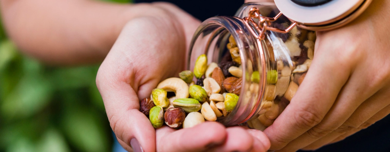 Føler du at det går litt for lang tid mellom frokost og lunsj? Eller får du «to-knekken» på jobb eller skole? Da er nøtter et supert alternativ. Det er fort gjort å ty til enkle og usunne valg fra kiosken som ikke metter når man skal ha i seg rask mat, men spiser du nøtter får du rask energi som metter lengre. I tillegg kan nøtter som et mellommåltid bidra til at du ikke spiser for mye senere når du kommer hjem skrubbsulten til middag.