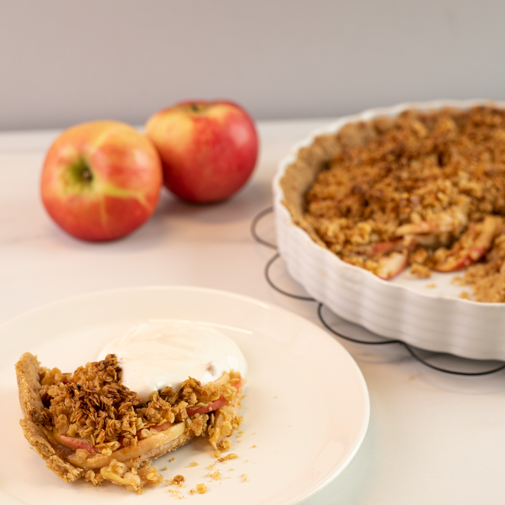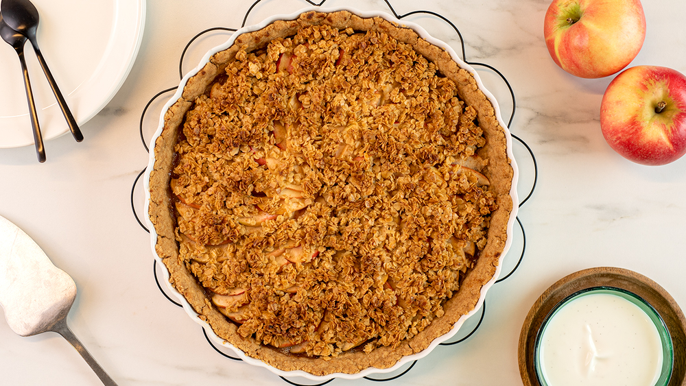 Overrask gjestene med smuldrepai. Servér med deilig vaniljekesam.