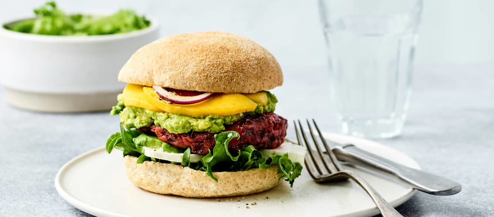 Hva med å teste denne deilige rødbetburgeren med avokado og mango?