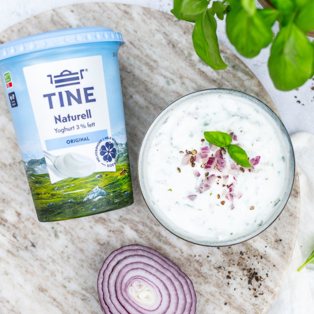 Yoghurt er et ypperlig utgangspunkt for friske dressinger. Denne enkle varianten med ferske krydderurter passer godt til alle slags salater og grillmat.