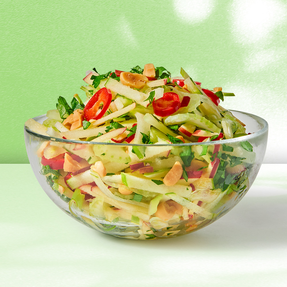 - Grovhakk peanøttene og persillen, og vend det inn i salaten.