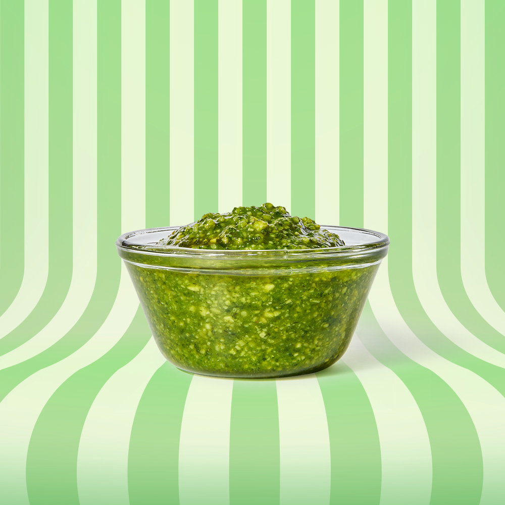 - Tilsett mer olje dersom du ønsker en tynnere pesto, og smak til med salt og pepper, eventuelt mer sitron dersom den trenger mer syrlighet.