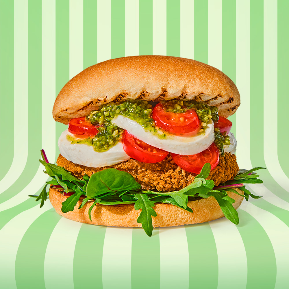 Burgerforslag: Crispy kyllingburger er nydelig med grillet salat og ovnsbakte søtpoteter. Ha pesto, tomat, ruccola og mozzarella på burgeren.