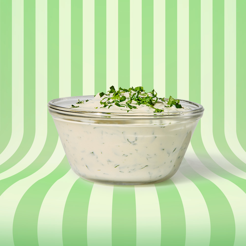 Rør sammen rømme, finhakket basilikum, salt og sitronsaft.