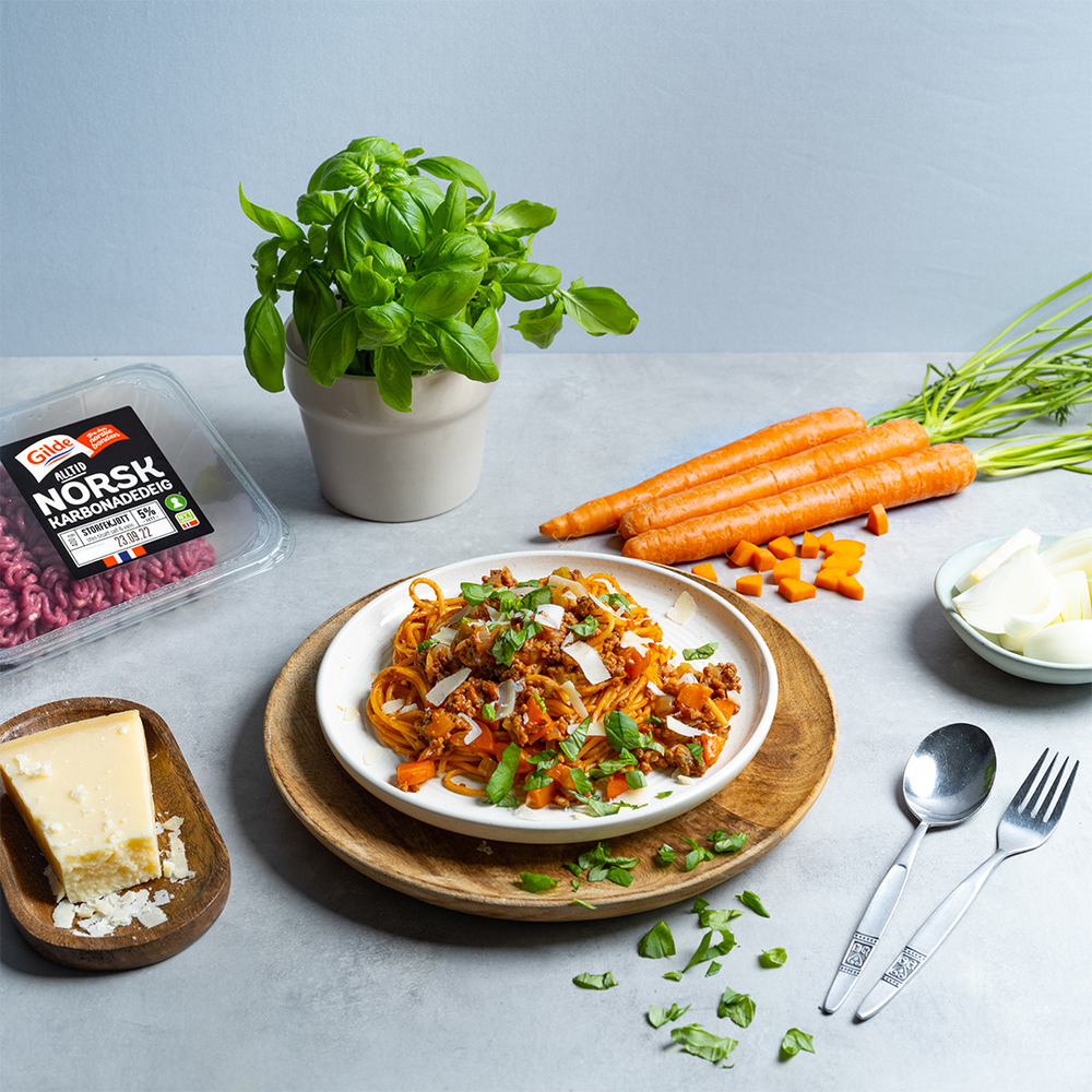 Med alt-i-ett-oppskrifter kan du diske opp velsmakende retter. Velg mellom bolognese med karbonadedeig, kremet pølsegryte eller kyllinggryte med bacon. Vi har laget er tre gode retter som smaker like godt foran peisen på hytta som på kjøkkenbordet hjemme.