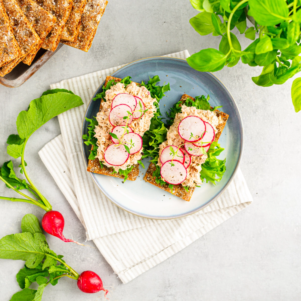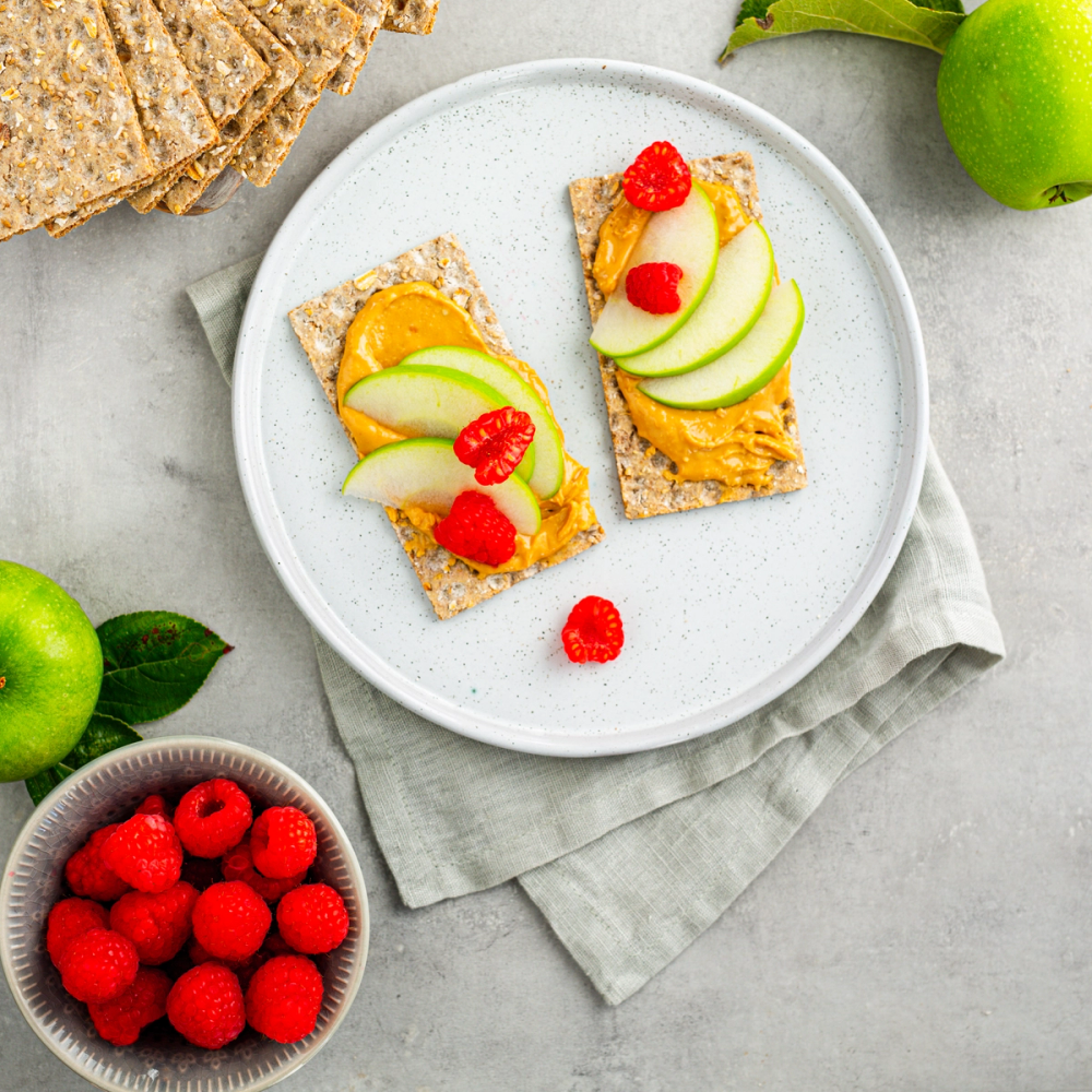 Med et skikkelig godt knekkebrød stående i skapet er er det lett å lage seg et raskt mellommåltid. Kombiner gjerne med proteinrikt pålegg og litt frukt eller grønt. Prøv for eksempel snøfrisk, røkelaks og ruccola om du har lyst på en smaksrik variant, eller peanøttsmør, eple og bringebær om du har mer lyst på noe søtt. Her finner du flere smakfulle forslag til hva du kan ha på knekkebrødet.