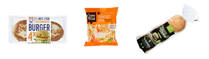 Fiskeburger er den perfekte hverdagsburgeren. Se etter nøkkelhullsmerkede fiskekaker eller -burgere som har høy andel fisk for å gjøre middagen litt sunnere. Server fiskeburgeren sammen med grove burgerbrød og rikelig med grønnsaker. Velg gjerne en råkostmiks som gir retten ekstra crunch.