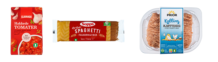 Når du lager pasta med kjøttsaus, eller bolognese, er det flere produktbytter du kan gjøre for å gjøre middagen litt sunnere. Du kan velge nøkkelhullsmerket spagetti med fullkorn, du kan velge karbonadedeig som har mindre fett enn kjøttdeig eller bruke kyllingkjøttdeig, og du kan velge nøkkelhullsmerkede hakkede tomater eller ferske tomater. Serverer du i tillegg en salat ved siden av, så har du en enkel og ganske sunn middag klar på rekordtid.