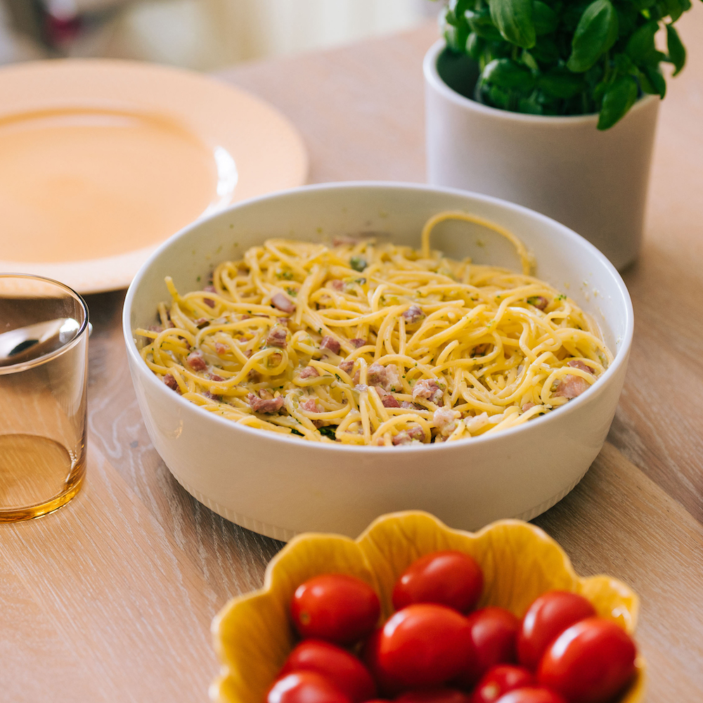 Milde smaker gjør denne retten til en hverdagsfavoritt. Gjør retten vegetarisk ved å droppe baconet og bruke plantebasert fløte og buljong. Oppskriften gir 4 porsjoner.