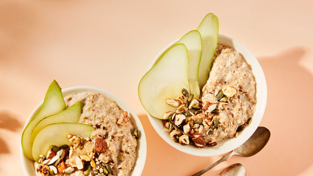 4. Havregrøt inneholder 100 prosent fullkorn. Hvis du lager havregrøten med halvparten vann og halvparten melk og topper den med litt hakkede nøtter og frukt, har du et veldig bra oppladningsmåltid til en utholdenhetsøkt med mye karbohydrater, moderat med protein av god kvalitet og litt sunt fett pluss antioksidanter.