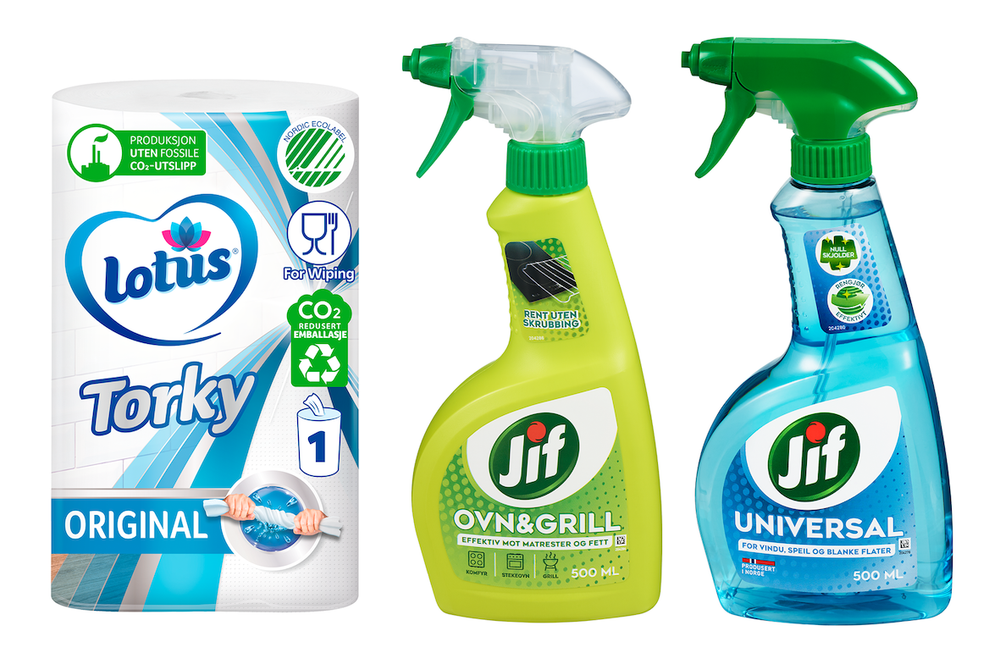 Du kan få bort mye med børste og skrape, men for et skikkelig rent resultat uten å bruke mye tid og krefter trenger du Jif Ovn og Grill og Lotus Torky. Jif Universal er super til å vaske utsiden av grillen med til slutt.