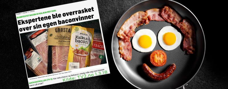 Enda litt mer overraskende var det kanskje da TV2s Matkontrollen i februar 2018 inviterte tre baconeksperter til blindsmakstest av to typer kalkunbacon og tre typer filetbacon av svin. Prior Kalkunbacon gikk rett til topps uten at smaksdommerne skjønte at det var kalkun de smakte på.