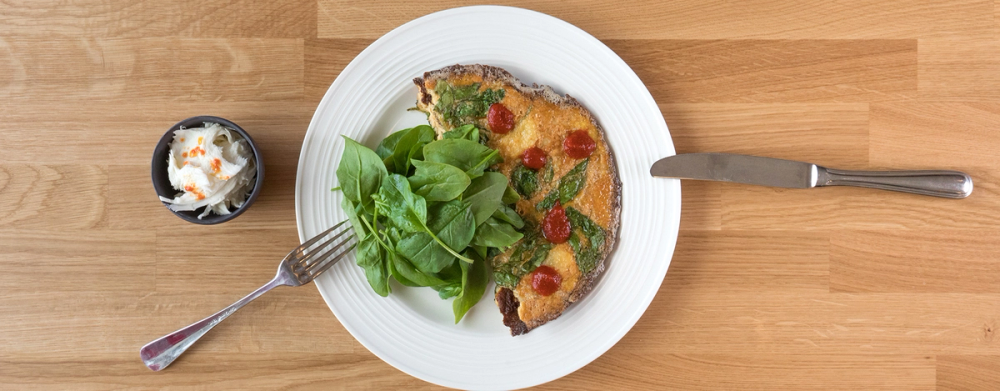 Sriracha-omelett med spinat og mozzarella er en kjapp og smakfull middag.