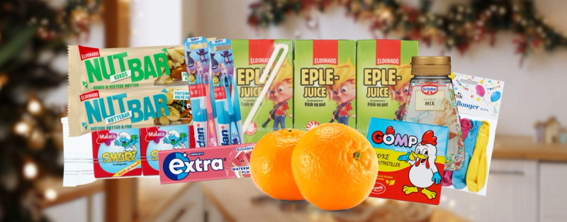 - desember: Julestrømpe-godteri og klementin