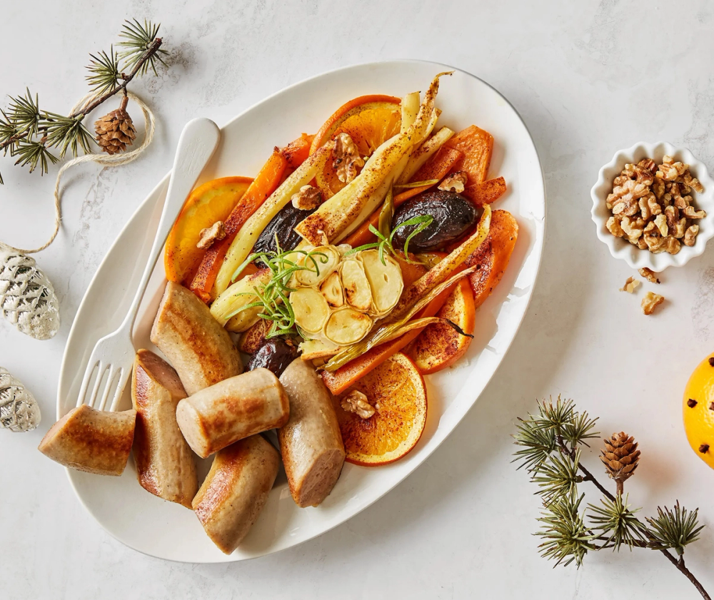 1. Julepølse med ovnsbakte grønnsaker