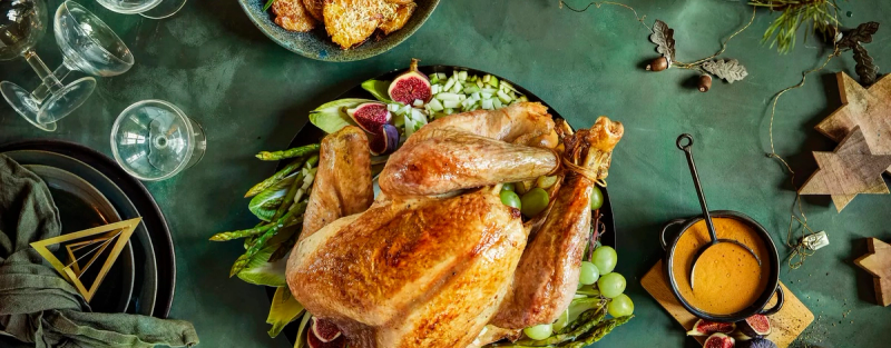 At maten er lettere, betyr på ingen måte at den er mindre festpreget. En helstekt kylling eller en saftig kalkunfilet passer perfekt som middag i høytiden. Bli inspirert av disse juleoppskriftene!