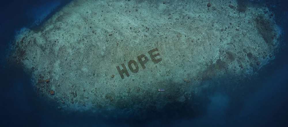 På korallrevet Salisi’ Besar har Sheba®️ installert såkalte "star reefs", heksagonformede stålkonstruksjoner som hjelper korallene å vokse. Korallene vil vokse i bokstavene HOPE.