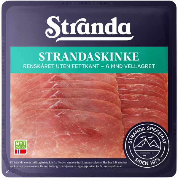 Hvis du foretrekker spekeskinke uten fettkant, finnes det nå en egen variant av Strandaskinke der det ytre fettet er skåret bort. Dette fettet har vært med på å gi god smak underveis i produksjonen, men fjernes før skinken blir skåret i skiver. Også denne varianten er lagret i seks måneder, og du finner den både i 120 gram og 70 gram i KIWI.