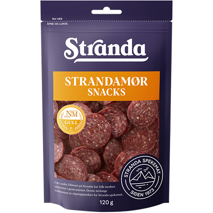 Her brukes kjøtt av får, svinehjerte, norsk storfehjerte, svinekjøtt og norsk storfekjøtt, og med en helt spesiell krydderblanding får dette pålegget en fantastisk smak du vil bite deg i merke. Strandamør Snacks er like godt på brødskiva, enten alene eller sammen med litt ost eller majones, som den er på koldtbord eller som snacks på lørdagskvelden.