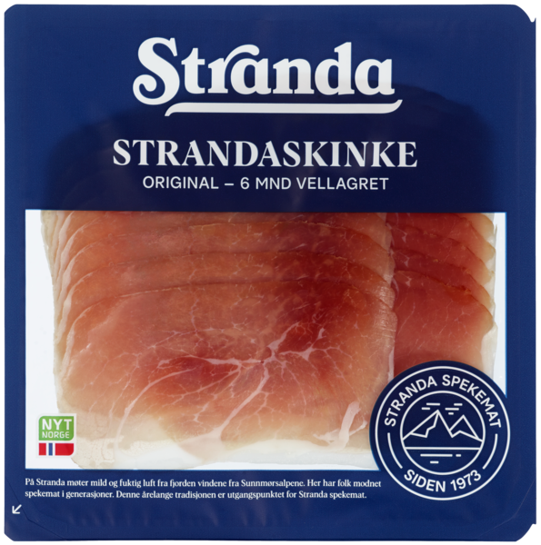 Her får du klassiskeren i stor pakke. Denne pakken passer perfekt til koldtbordet eller frokosten med storfamilien. Skinken har litt mer røyksmak enn Strandaskinke, og er lagret i minst 3 måneder.
