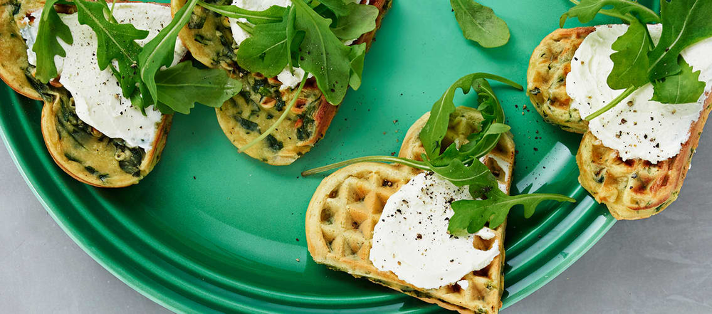 Se oppskrift: Spinatvaffel med Snøfrisk og ruccola