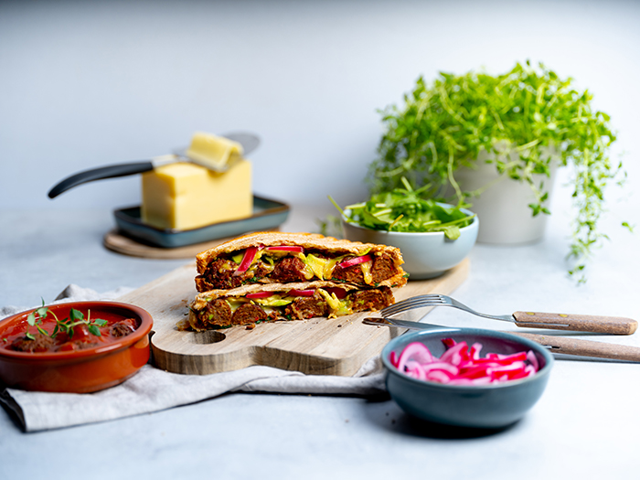 - Legg kjøttsausen på grovt brød, og legg på skiver av Norvegia® Original ost.