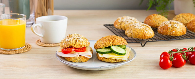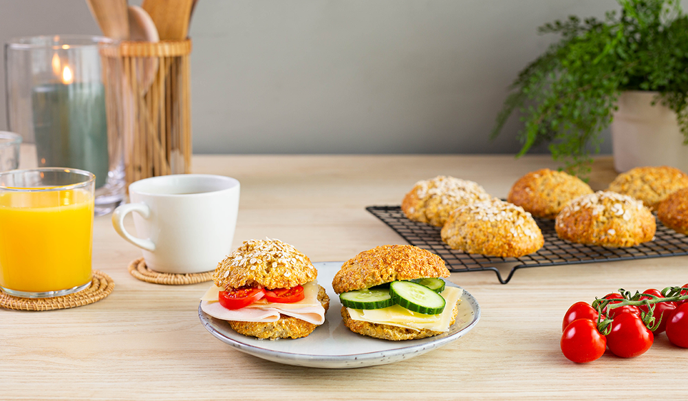 Eltefrie havrerundstykker med cottage cheese