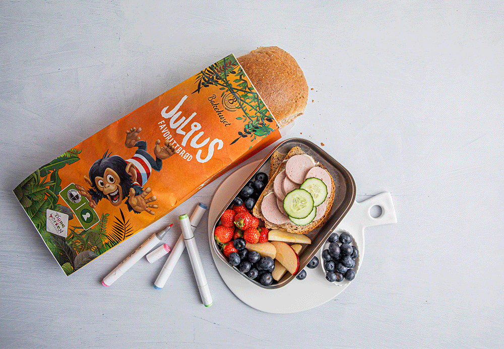 Har du ferskt, oppskåret brød i fryseren kan du ta ut det antallet brødskiver du trenger når du skal smøre matpakken. Da vil brødet være tint og ferskt til matpakken skal spises, og på denne måten holder pålegget seg bedre også. Velg grovt brød med finmalt korn, mange barn er ikke så glad i store korn og frø. I tillegg metter grovt brød lenge og gir jevnt blodsukker, noe som er viktig for barn som skal konsentrere seg på skolen.