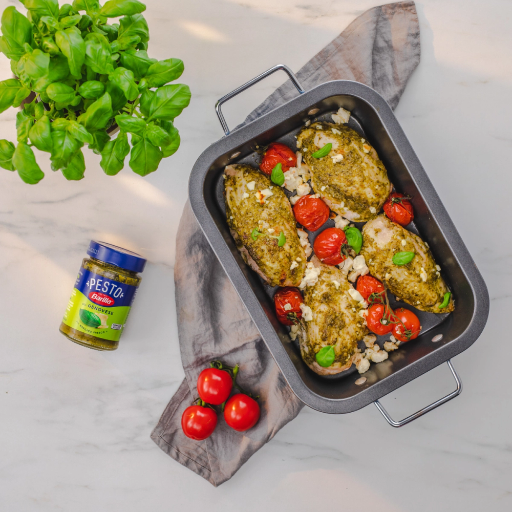 - Fordel Barilla Pesto alla Genovese over kyllingfiletene.