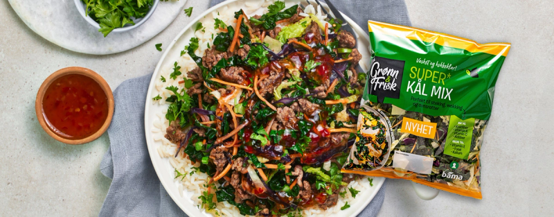 BAMA har fått et nytt medlem i Super-familien! Denne høsten lanseres grønnsaksblandingen Grønn & Frisk Super* Kål Mix, som gjør hverdagsmiddagen enda enklere. Blandingen består av en frisk og sprø miks av nøtteaktig svartkål, mild savoykål, saftig hodekål, sprø rødkål og søt gulrot. Blandingen er mild, men samtidig full av gode smaker, så denne passer for både store og små.