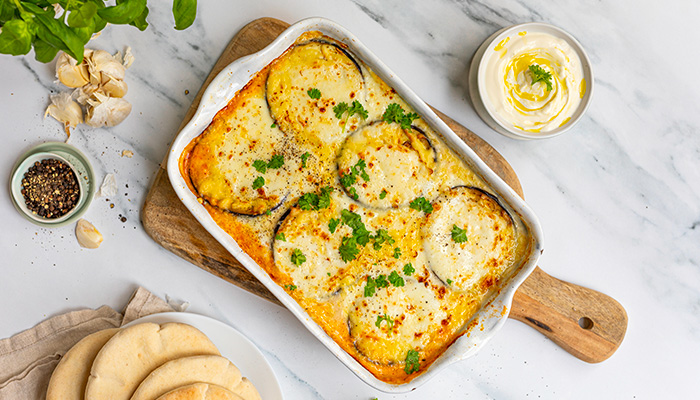 Moussaka stammer fra Midtøsten, men er for de fleste kjent fra ferieturer til Hellas og Tyrkia. En gratinert rett som opprinnelig består av aubergine, tomat, lam, hvitløk og diverse urter, men det er også enkelt å legge til eller bytte ut grønnsaker dersom man for eksempel ikke liker aubergine. Sunt og rik på smak. Bruk fersk bolognesesaus som tomatsaus i moussakaen og server gjerne med gresk salat til.