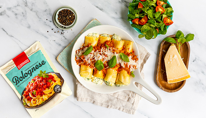 Ferdig fersk bolognesesaus fra Eldorado.Lag enkel tagliatelle med kjøttdeig og ekstra grønnsaker.Smakfull og enkel moussaka.Canneloni er en enkel hverdagsmiddag.