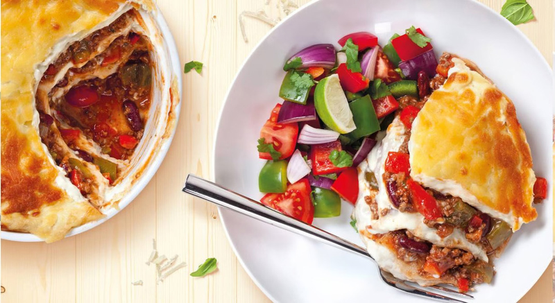 I denne varianten av lasagne har tomatsausen deilige meksikanske smaker og lasagneplatene er byttet ut med tortillalefser. Fyll lasagnen stekt kjøttdeig og det du har av bønner eller grønnsaker, i tillegg til Dolmio pastasaus og bechamelsaus. Da ender du opp med en rask og familievennlig hverdagsmiddag.