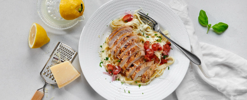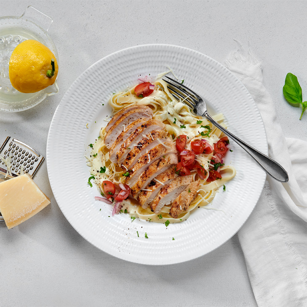 Kylling fra Lovise er lokalprodusert kylling av høy kvalitet. Nå finner du den uten skinn i alle KIWI-butikker. Perfekt til enkle hverdagsretter, som pannestekt kylling med sitronpasta. Oppskriften får du her.