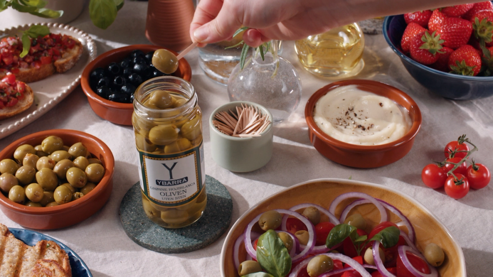 Å skape mangfold på tapasbordet kan kanskje høres overveldende ut, men det er enklere enn du tror! Kjøp ulike typer tapasoliven og server dem i skåler med tannpirkere. Spansk aioli fra Ybarra kan også kjøpes ferdig i din lokale KIWI-butikk, og det samme kan godt speltbrød eller loff, spekeskinke og gode oster. Det skal overraskende lite til å dekke et fullverdig og godt tapasbord, tilnærmet uten innsats.