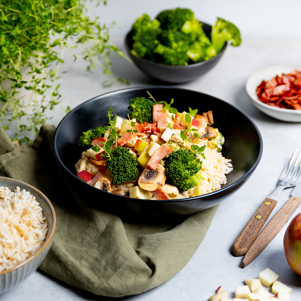 Kyllinggryte med bacon og fullkornsris