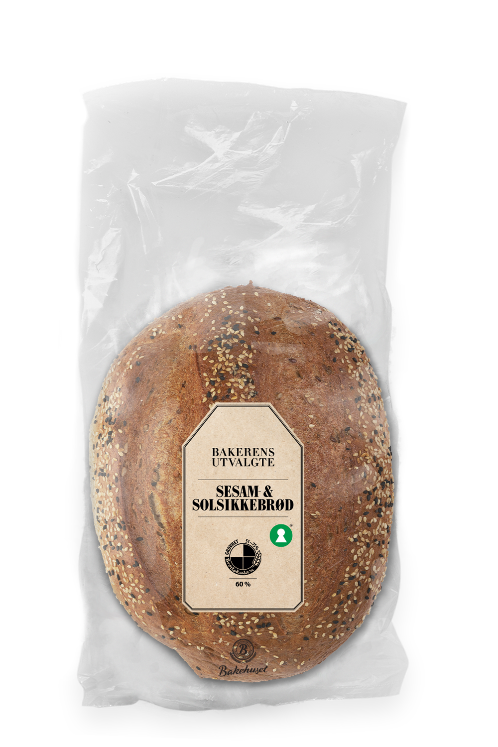Sesam- og solsikkebrødet er et luftig brød med langsgående snitt, og en god skorpe dekorert med sesam. Brødet er 60 % grovt og nøkkelhullsmerket, slik at du kan være sikker på at du har valgt det aller beste for dem du er glad i.