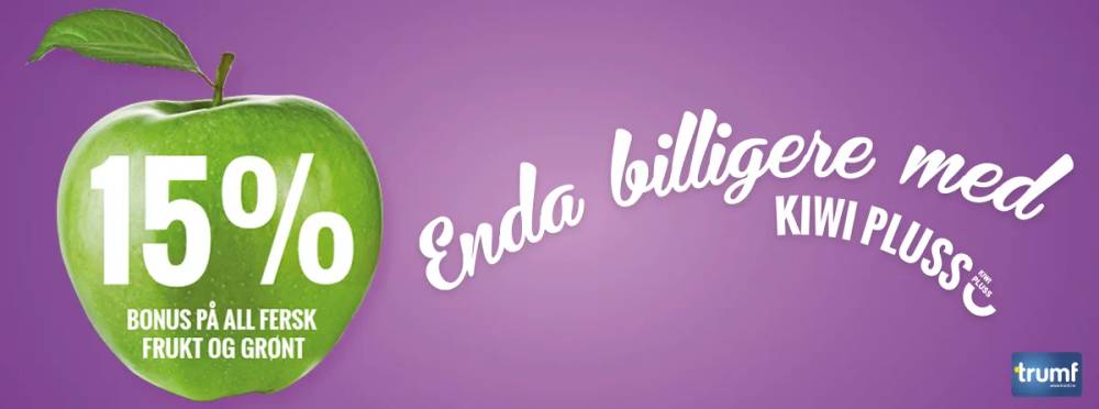 I januar dette året lanserte vi kundefordelsprogrammet KIWI PLUSS. Kunder som registrerte seg i programmet fikk 7,5 prosent bonus på all fersk frukt og grønt – en bonus som senere har blitt doblet til 15 prosent. På Trippel Trumf-torsdager får kundene våre hele 17 prosent bonus på disse varene. Bonusen kommer på toppen av allerede lave priser.