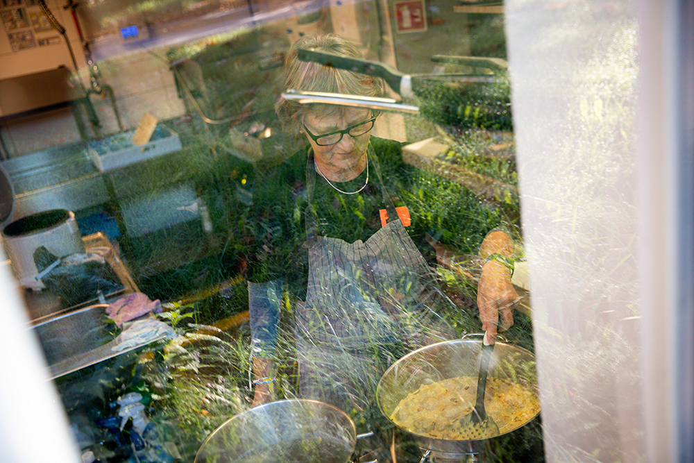 Ellen Berg Ellingsen jobber som frivillig på kjøkkenet til Kirkens Bymisjons kafé i Lillestrøm én gang i uken. 📸Torbjørn BrovoldAmy Fjellheim jobber også som frivillig på Kirkens Bymisjons kafé. 📸Torbjørn Brovold