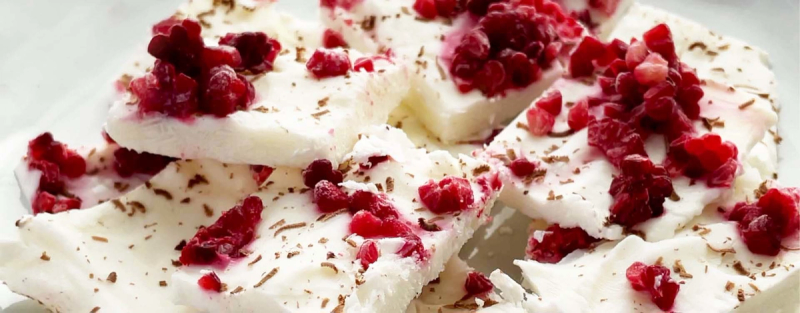 Gresk yoghurt kan brukes til så mangt. Prøv for eksempel denne sunne snacksen med smak av bringebær og sjokolade. Alt du trenger er fire ingredienser og en fryser. Perfekt når du har lyst på noe godt eller bare trenger litt ekstra påfyll.