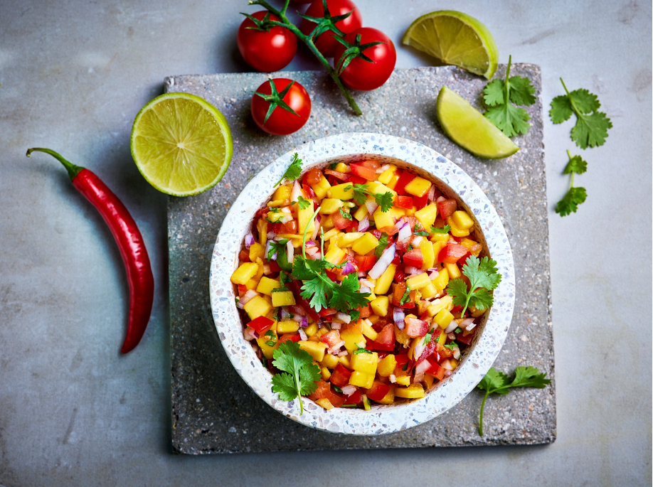 Tomat- og mangosalsa