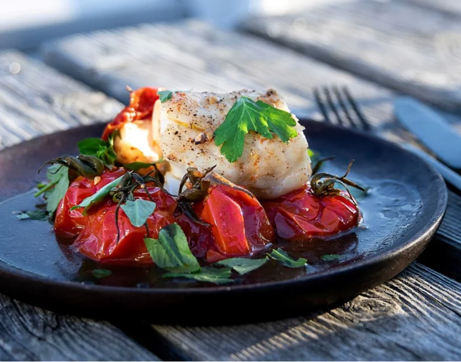 Grillet torsk med tomat