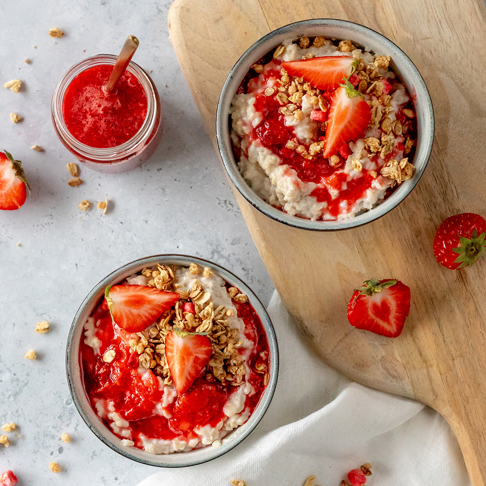 - Finn frem et passende glass og legg havregrøt og rørte bær lagvis. Topp gjerne med enda mer bær og crunchy granola.