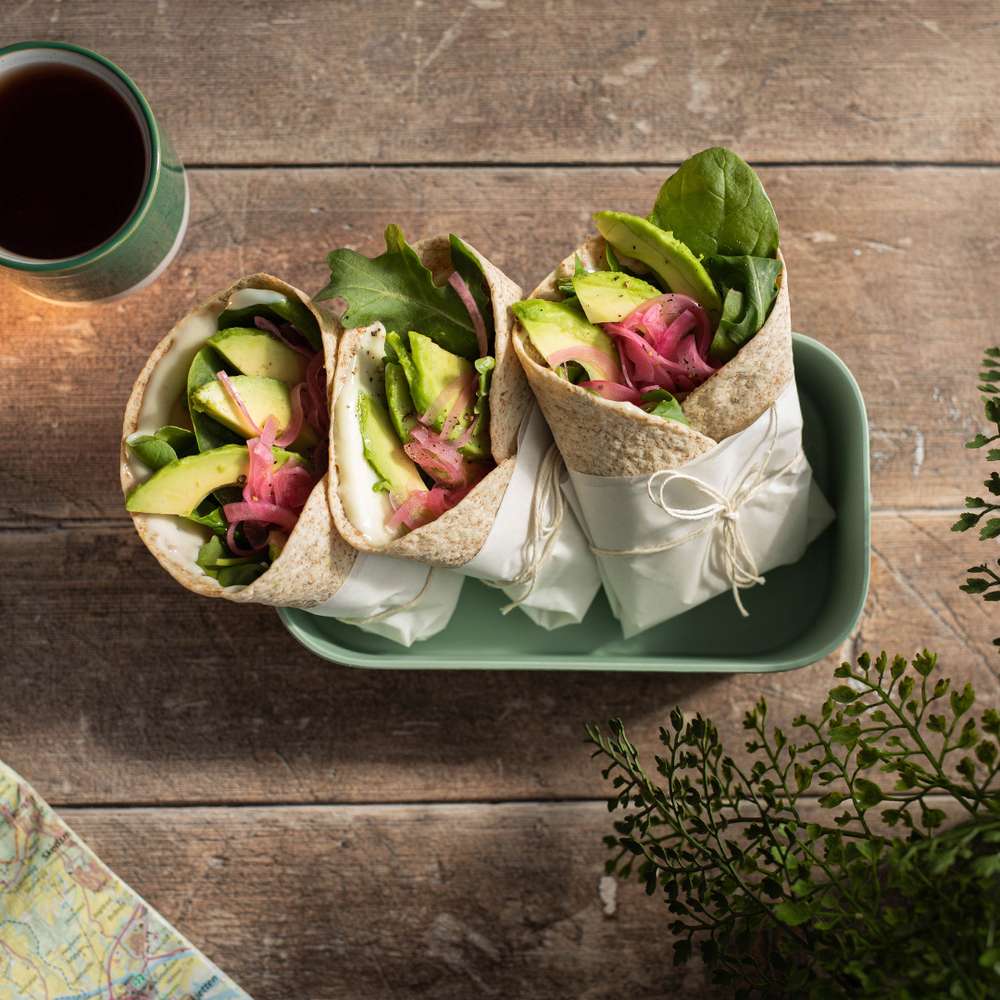 En tortilla-omelett er enkel å lage og passer godt til frokost eller lunsj på tur. Lag omelettrøren hjemme ved å blande egg, melk, salt og pepper. Du kan også bruke opp grønnsaksrester i røren. Hell røren over på en flaske for enkel transport og oppbevaring. Når det er tid for matlaging, varmer du opp en stekepanne på stormkjøkkenet, steker omeletten og har på tortillaen.