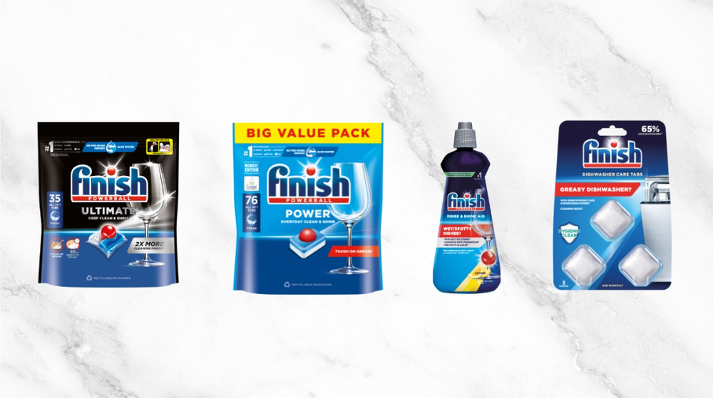 Selv om Finish’ oppvasktabletter lover «alt i ett», kan det noen ganger være lurt å bruke Finish skyllemiddel i tillegg.