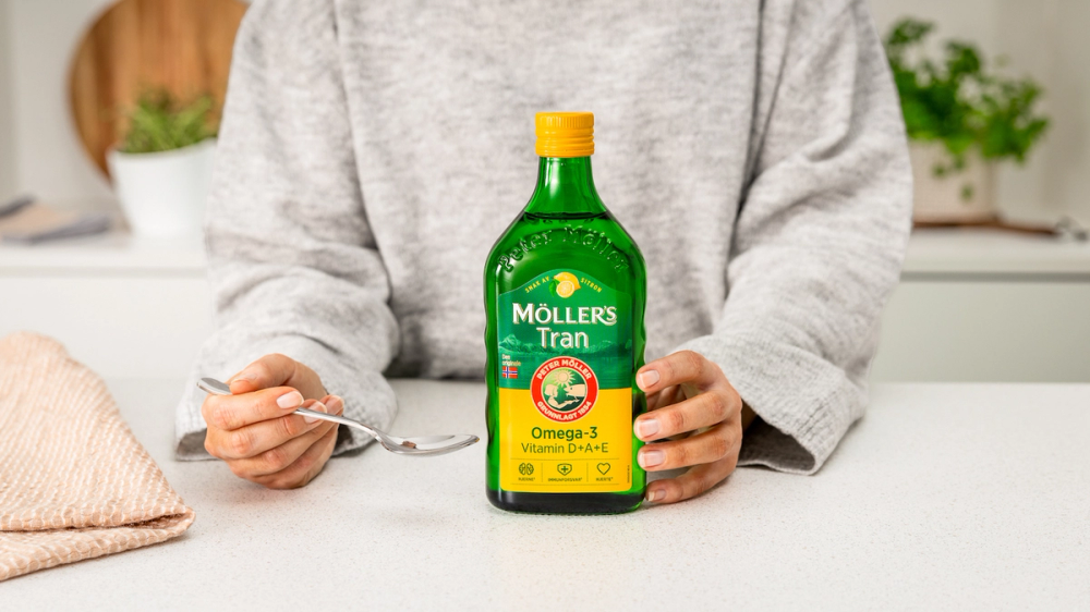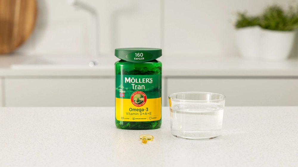 Möller’s Tran gir deg mye omega-3 for pengene. 1 stor teskje tran inneholder cirka 1,2 gram omega-3 og dekker dagsbehovet. En flaske tran på 500 ml inneholder hele 100 teskjeer.